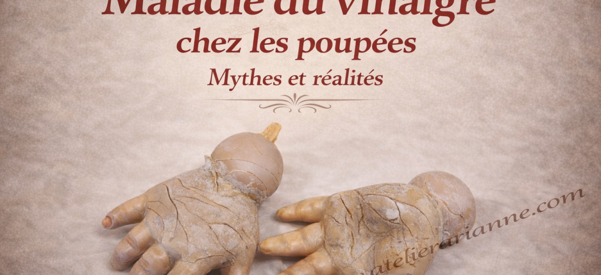 Mythes, réalités et pratiques de conservation Comprendre, reconnaître et ralentir le syndrome du vinaigre dans les poupées anciennes Introduction Bonjour à toutes et à tous, Hier, j’ai publié un article détaillé consacré à la poupée Catherine de la maison Raynal. À la suite de cette … Lire la suite de La maladie du vinaigre des poupées