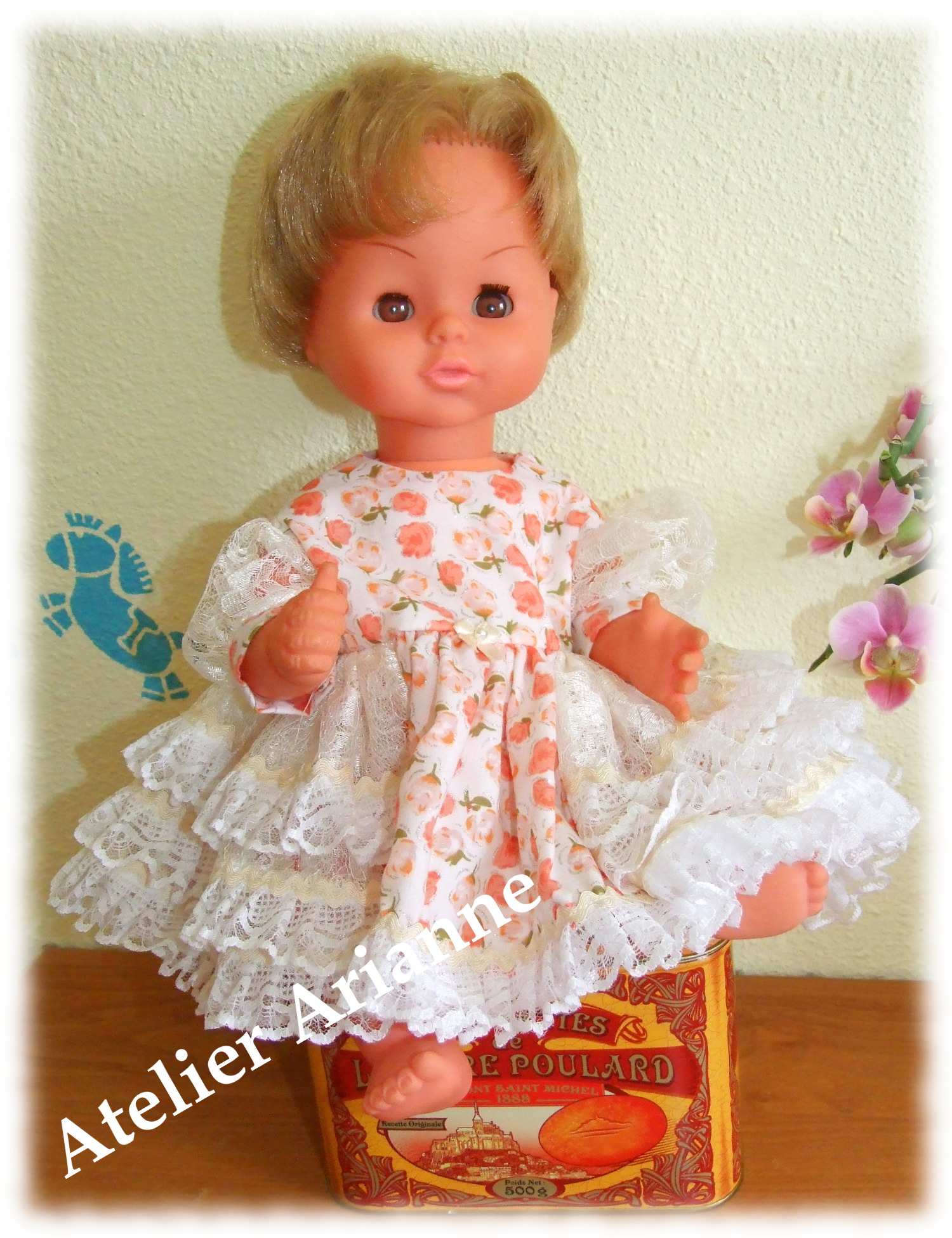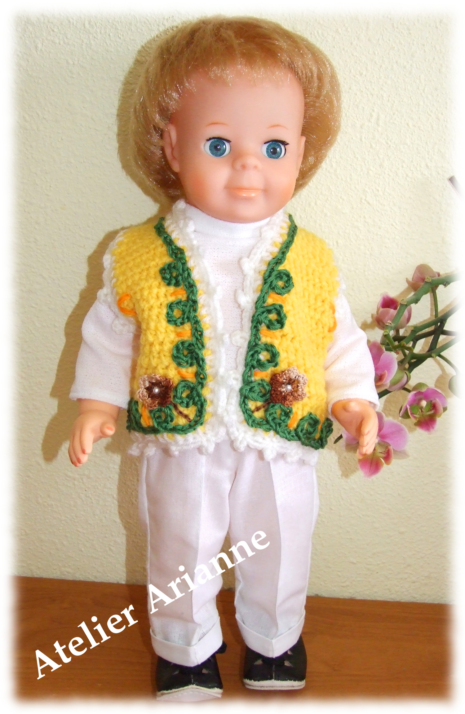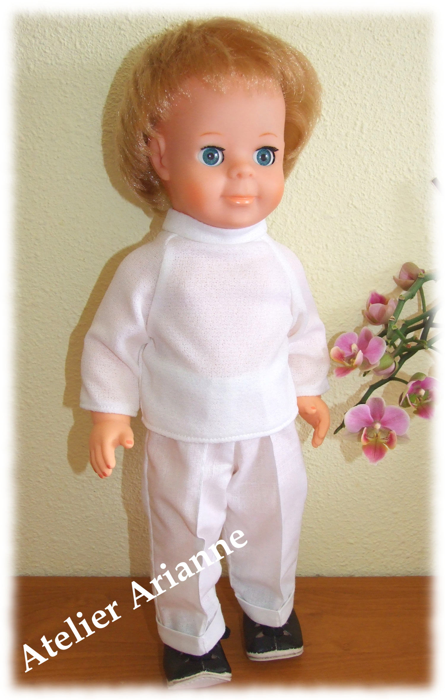 Presque identique que l’original Tenue pour Jean-Michel Date : Juillet 1982 La taille de la poupée : 40 cm 2 pièces : le t-shirt et le short Couleur : Blanc et bleu marine TweetezPartagezEnregistrerPartagez0 Partages