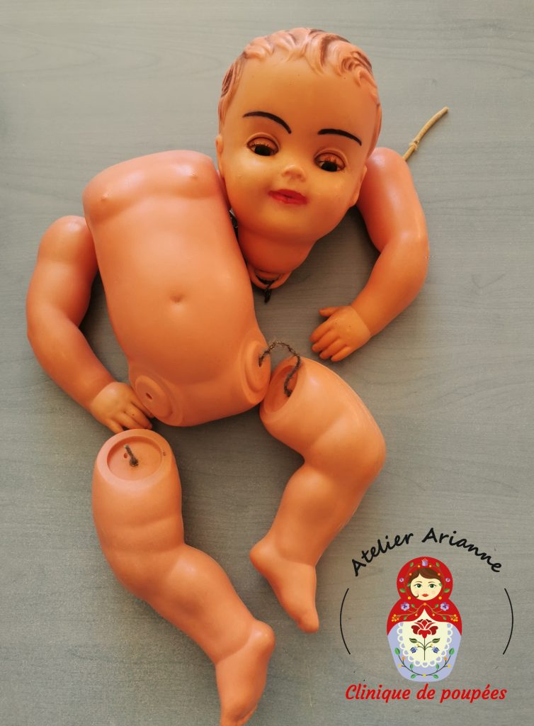 Clinique des poupées – remplacement des élastiques d’un baigneur âgé de 60 ans
