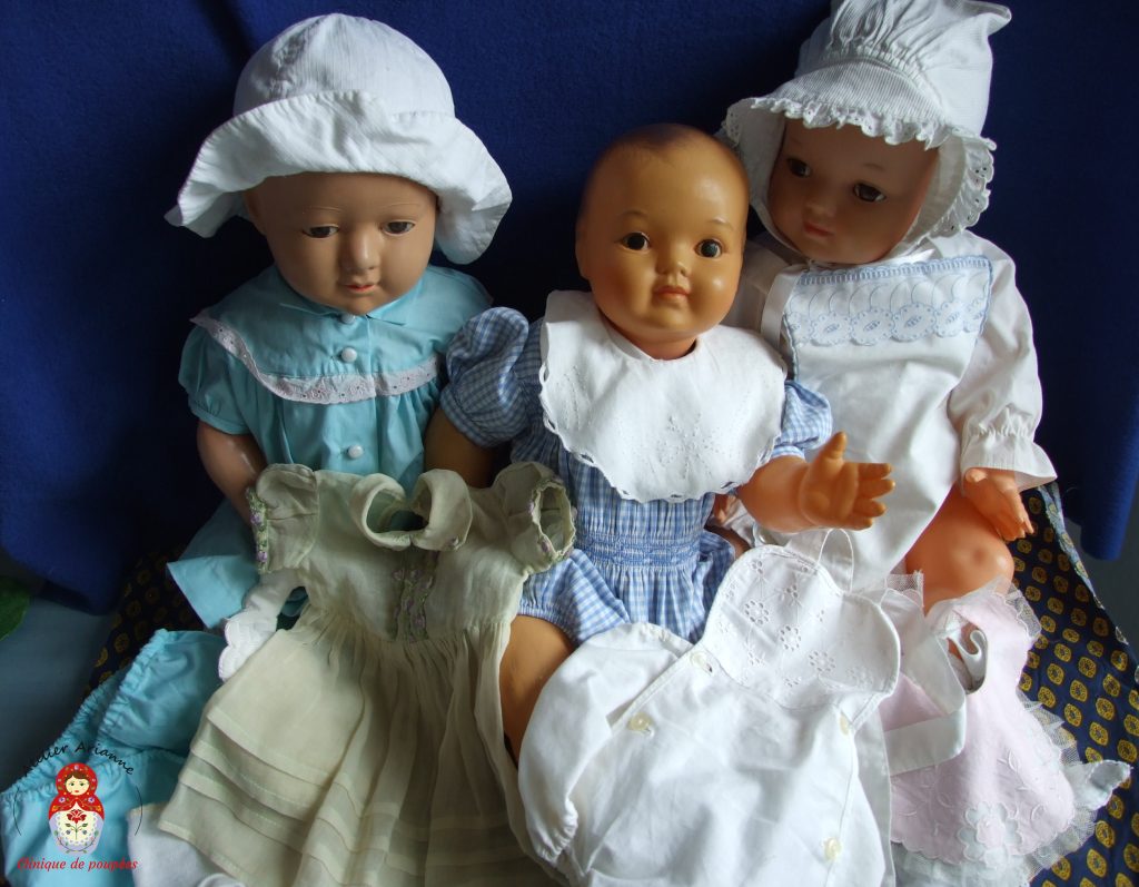 Nous avons reçu trois magnifiques baigneurs de chez Petitcollin et Bébé Convert en parfait état ,vêtus de superbes vêtements anciens pour baigneurs.