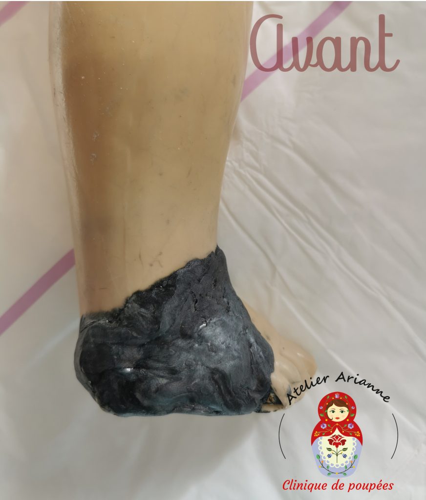 Il s’agit de la poupée de cœur de Madame Joëlle, dont le mari a décidé de faire un cadeau à son épouse en réparant la poupée de son enfance. Madame Joëlle l’attend avec impatience, j’espère donc qu’elle sera heureuse.
