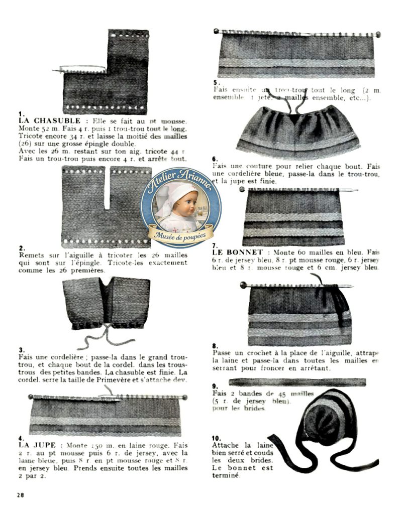 La poupée devenait alors un support d’apprentissage, permettant aux enfants de découvrir différentes techniques de tricot tout en habillant leur poupée.