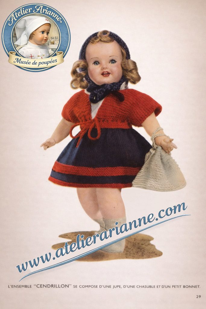 Cet article présente la tenue Cendrillon et les instructions de tricot destinées à habiller cette poupée emblématique de l’après-guerre.