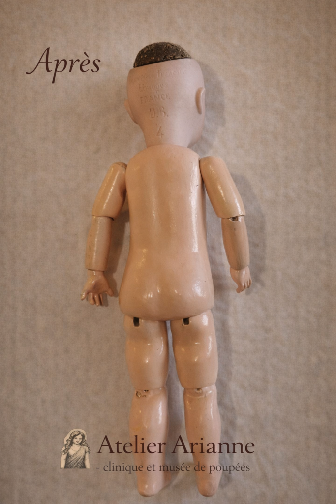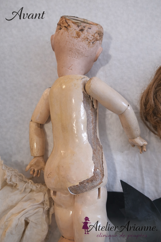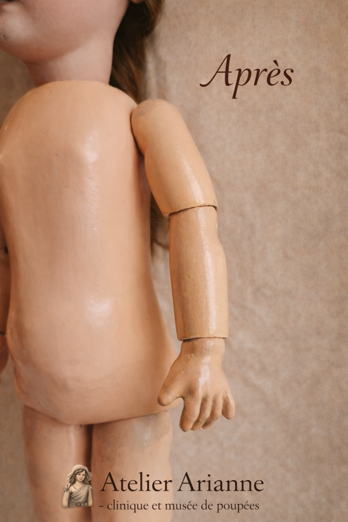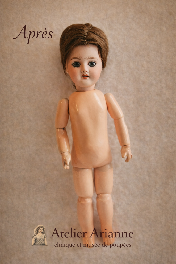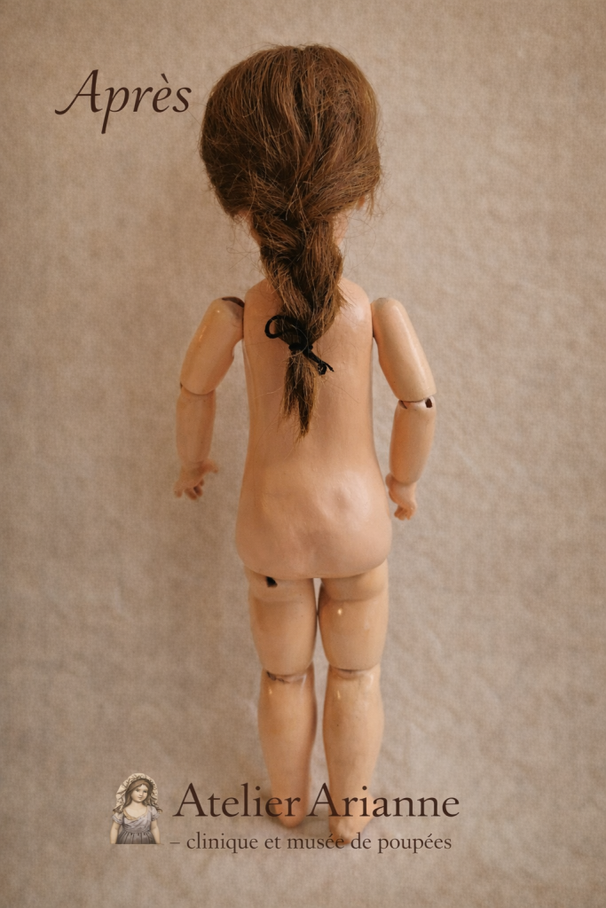 Par ailleurs, l’Atelier Arianne informe Monsieur Pierre et Madame Yvette que la restauration d’une autre poupée qu’ils nous ont confiée a désormais commencé. Elle fera l’objet de la même attention, du même soin et du même niveau d’exigence.