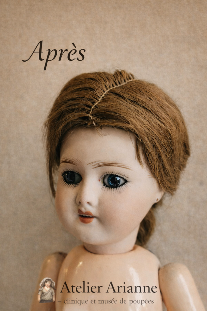L’Atelier Arianne adresse ses remerciements les plus sincères à Monsieur Pierre et Madame Yvette pour la confiance accordée à la clinique dans la restauration de cette poupée ancienne. Confier un objet chargé d’histoire et d’émotion est un geste précieux, qui engage notre responsabilité et notre exigence à chaque étape du travail.