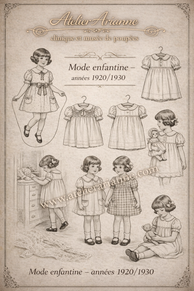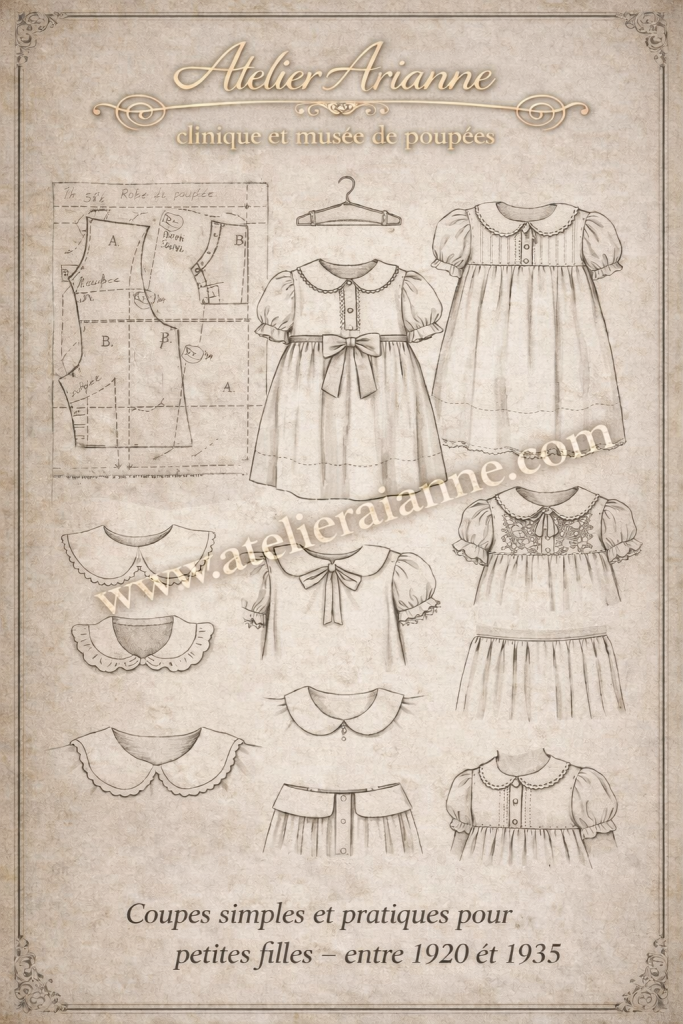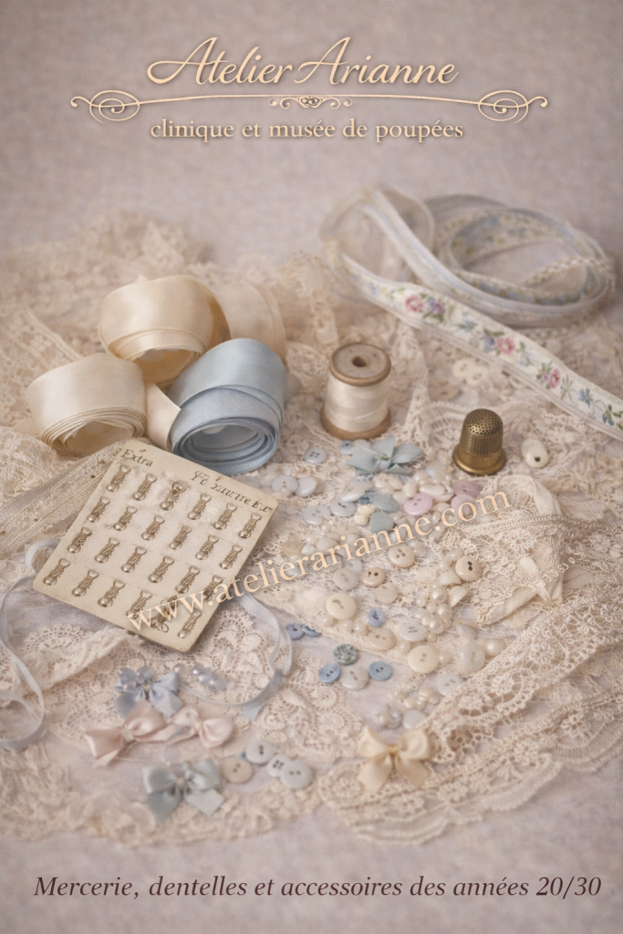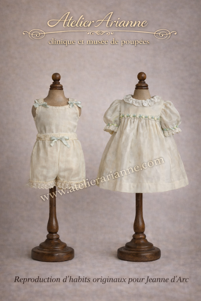 • déshabillage sécurisé des poupées • nettoyage et conservation des vêtements anciens • repassage doux et remise en forme • fabrication ou restauration de sous-vêtements anciens (lingerie indispensable à la silhouette) • respect des codes vestimentaires d’époque • présentation finale cohérente et historiquement fidèle