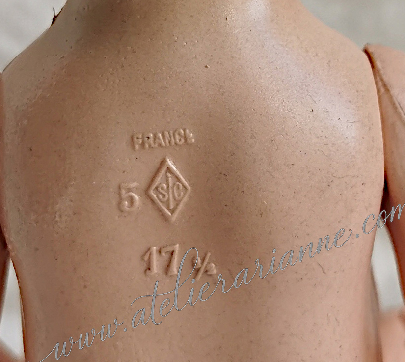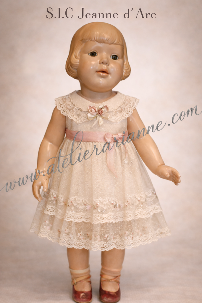 Modèle attesté dans la production SIC à partir du début des années 1920. Poupée en celluloïd, généralement marquée dragon + FRANCE + numéro de taille (ex. 28).