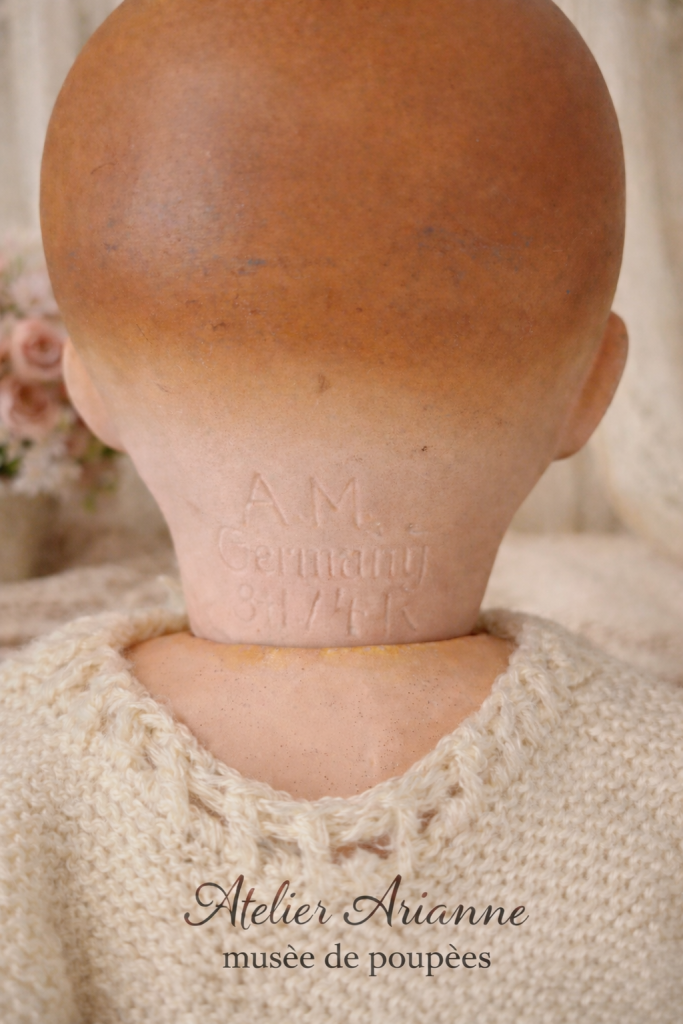 Il s’agit d’un modèle historique, représentatif du savoir-faire de la maison Armand Marseille, l’une des plus importantes manufactures de têtes en porcelaine biscuit à Köppelsdorf (Thuringe).
