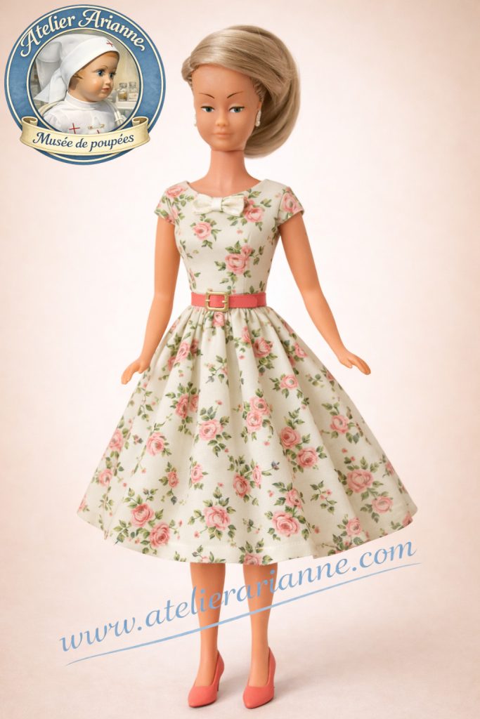 Poupée Mily de GéGé – robe fleurie d’inspiration printanière (années 1960)