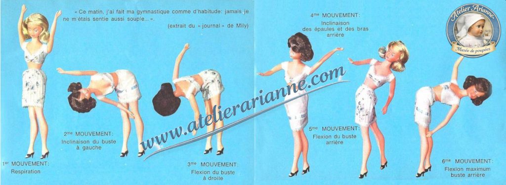 Planche illustrée présentant différentes positions du corps de la poupée Mily.