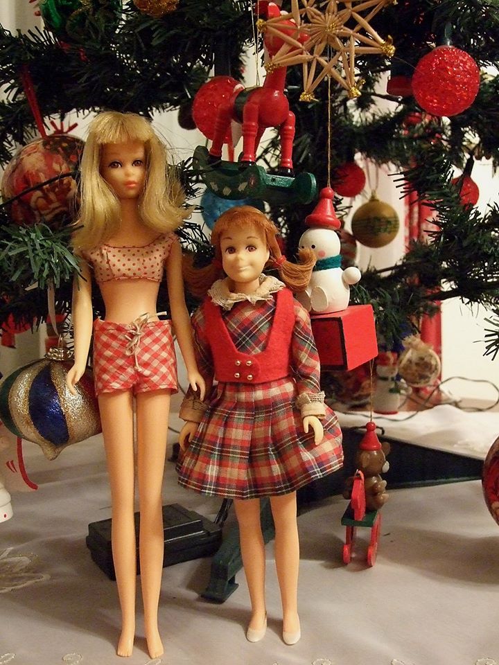 La petite poupée, celle de droite est l’amie de Skipper la petite sœur de Barbie. Elle s’appelle Skooter, et elle est née en 1966.