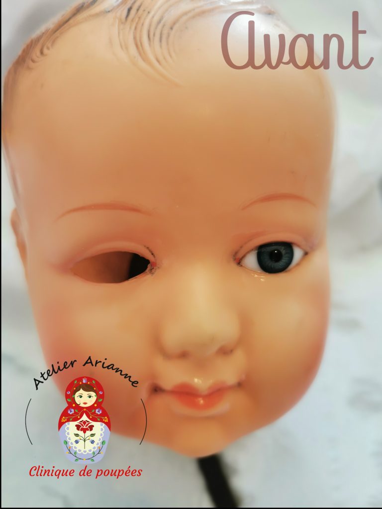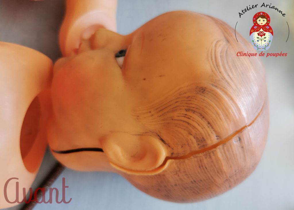 Le petit baigneur présentait plusieurs problèmes : la tête était cassée, le corps était fissuré, il fallait renforcer la partie au niveau du cou, renforcer les fissures au niveau des élastiques, remplacer les élastiques et nettoyer le baigneur. Un autre problème concernait les yeux. La colle était abîmée et un œil était tombé, l’autre tenait très mal, il a donc fallu les nettoyer et les remonter.
