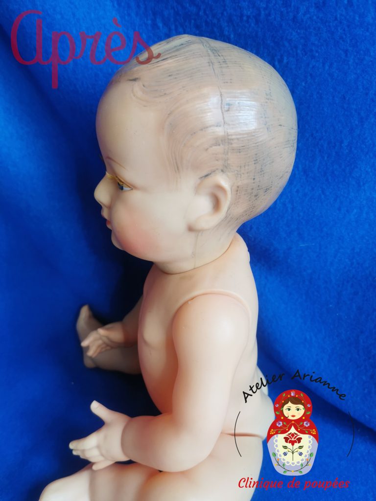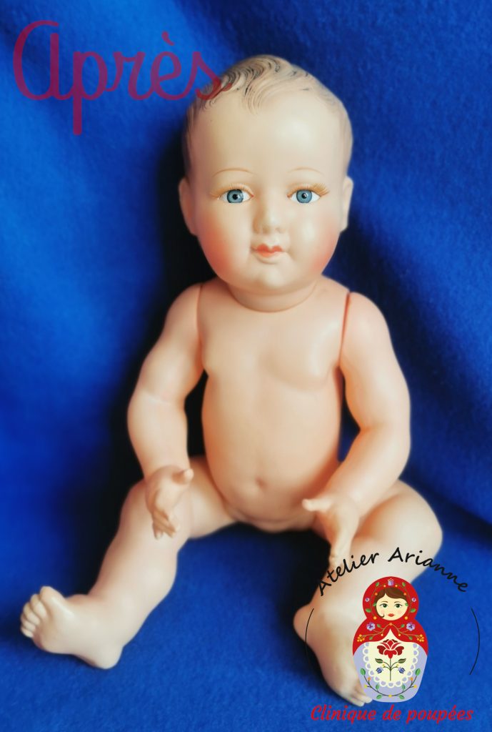 Réparation d’un baigneur Petitcollin en celluloïd.