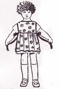 Reproduction de tenue pour poupée Bleuette-robe et tablier de février 1923