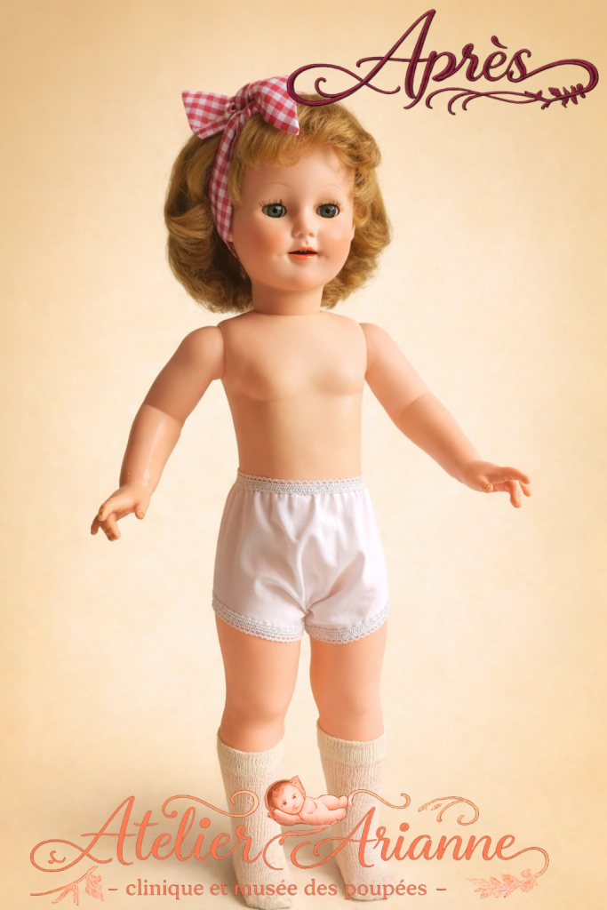 Poupée Raynal restaurée à la clinique de poupées Atelier Arianne – France