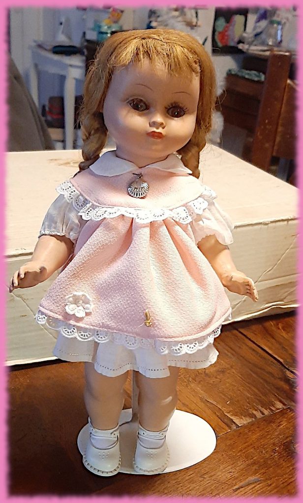 Série : TOUS ENSEMBLE DANS LA VIE DU MUSÉE « Présentation des poupées dans leurs vêtements d’origine » Poupée Bella “grosses cuisses” rhodoïd