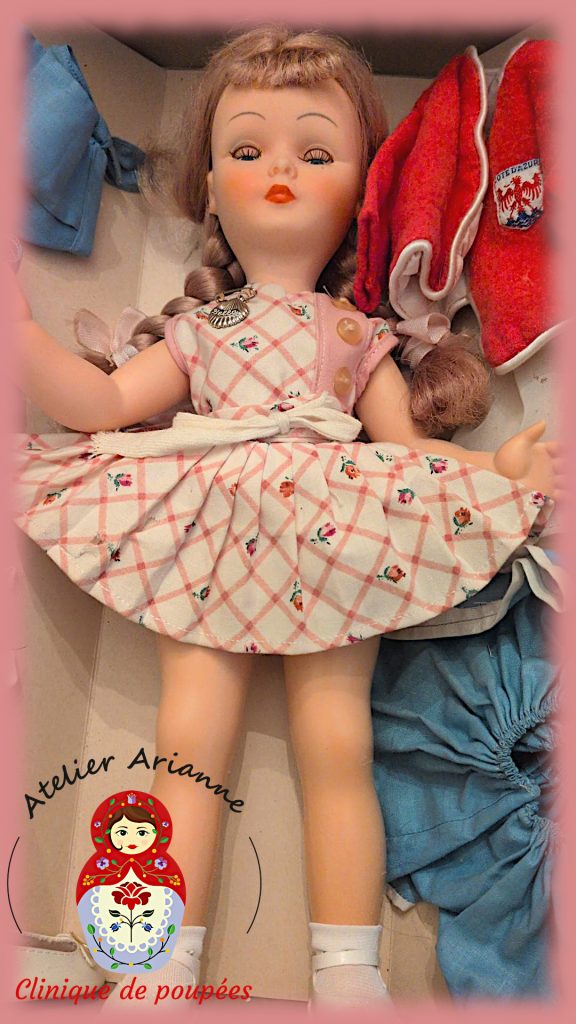 Série : TOUS ENSEMBLE DANS LA VIE DU MUSÉE « Présentation des poupées dans leurs vêtements d’origine » Poupée Nadette de Bella- La petite fille du magasin Bernadette