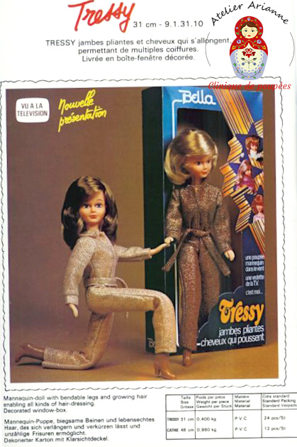 Bonsoir tout le monde . Bien qu’ayant beaucoup de Bella , rares sont celles en tenue d’origine . Celle-ci n’a , semble-t-il, jamais quitté sa boîte . (Tenue Disco : 1980 ? )