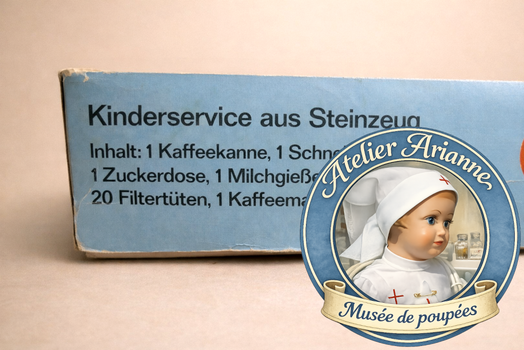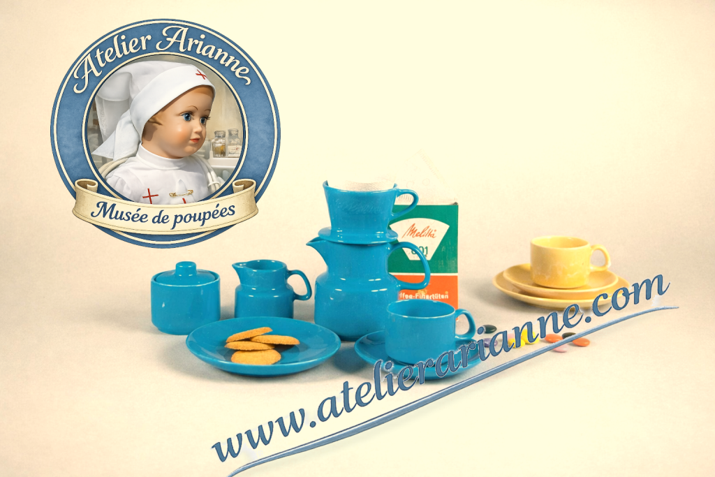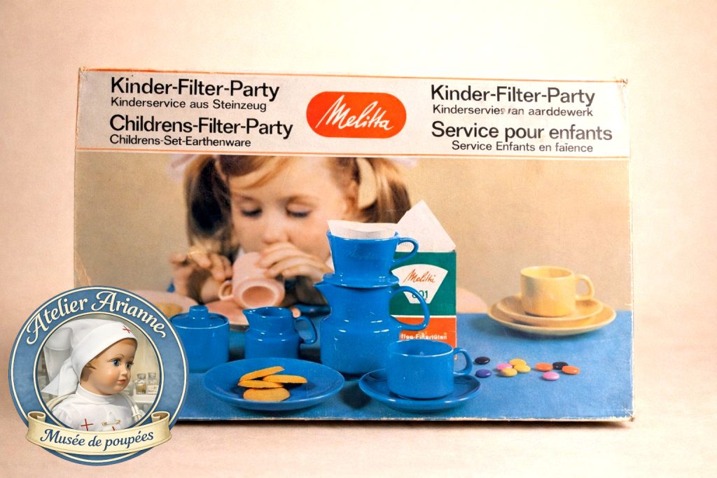 dinette Melitta, Melitta Allemagne, dinette ancienne, service miniature pour poupée, dinette en grès, Steinzeug Melitta, jouets anciens Allemagne, dinette vintage années 1950 1960 1970, histoire Melitta Bentz, filtre à café Melitta, jouets d’imitation enfants, objets miniatures cuisine, collection dinette ancienne, jouets anciens européens, patrimoine du jouet, objets du quotidien miniatures, dinette de poupée, musée de poupées, Atelier Arianne, collection jouets anciens, dinette authentique, boîte d’origine jouet ancien