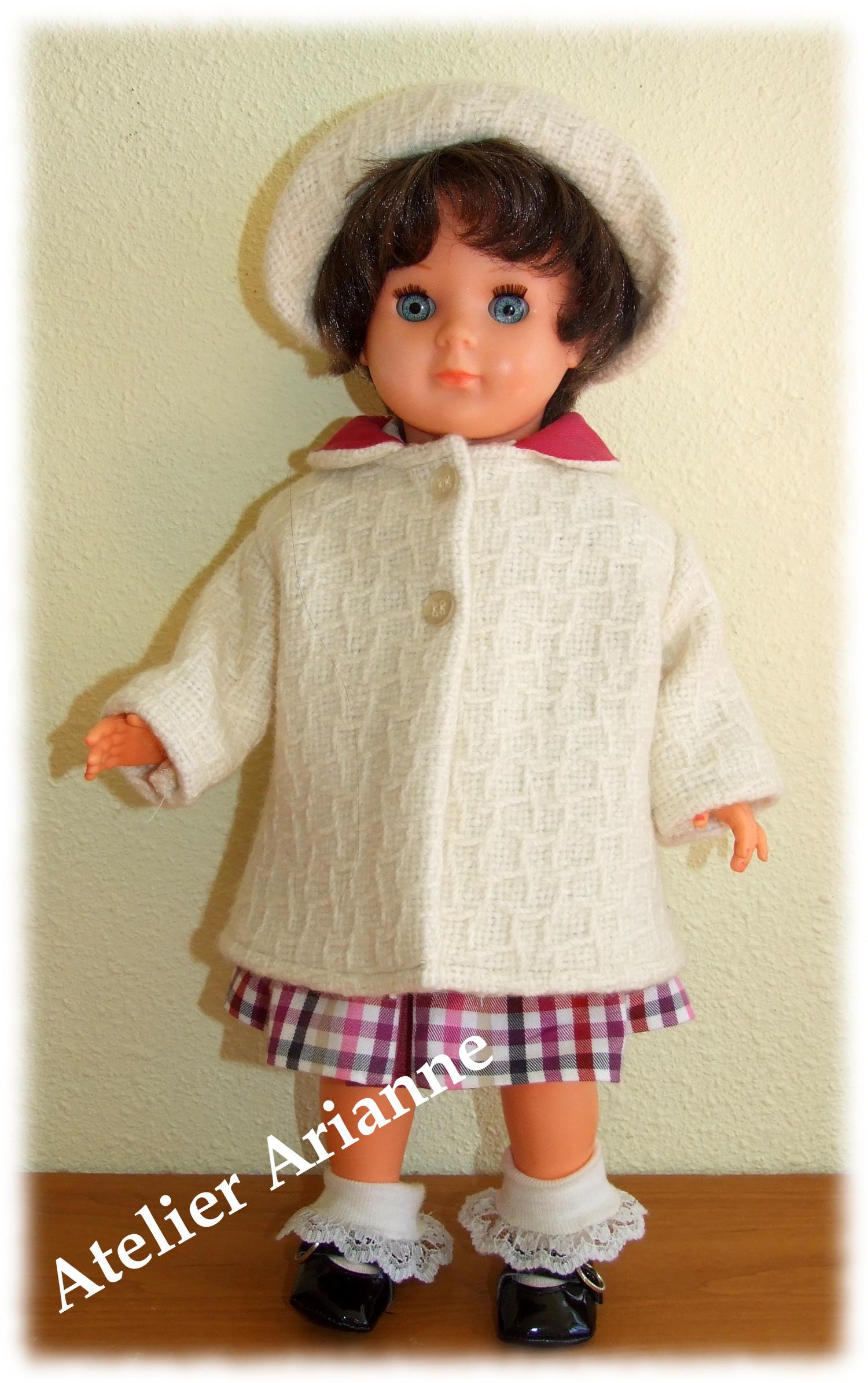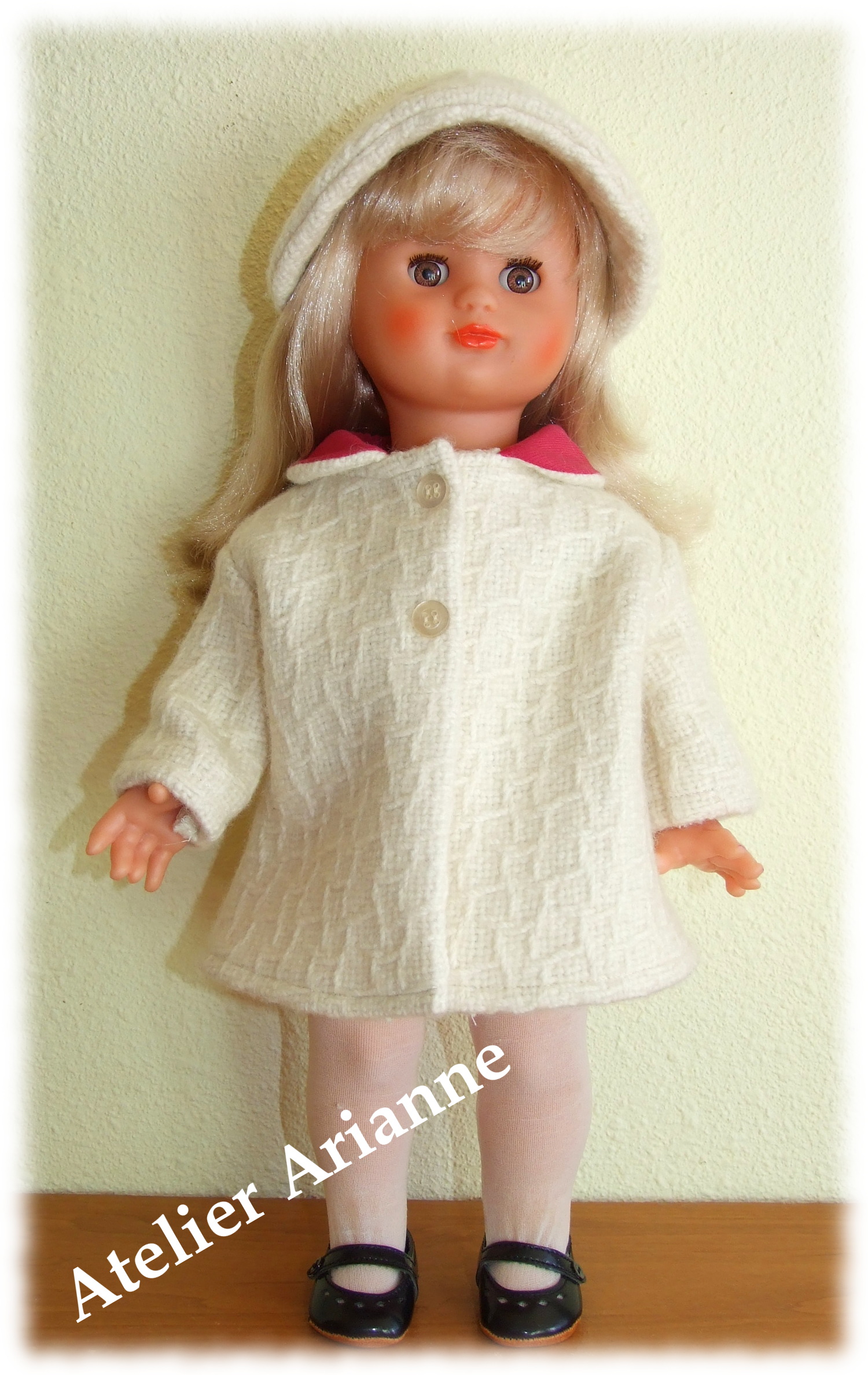Tenue décembre 1963 pour poupées Modes et Travaux, Marie-Françoise, Françoise, Louise, Francette et Emilie 2 pièce : manteau et chapeau