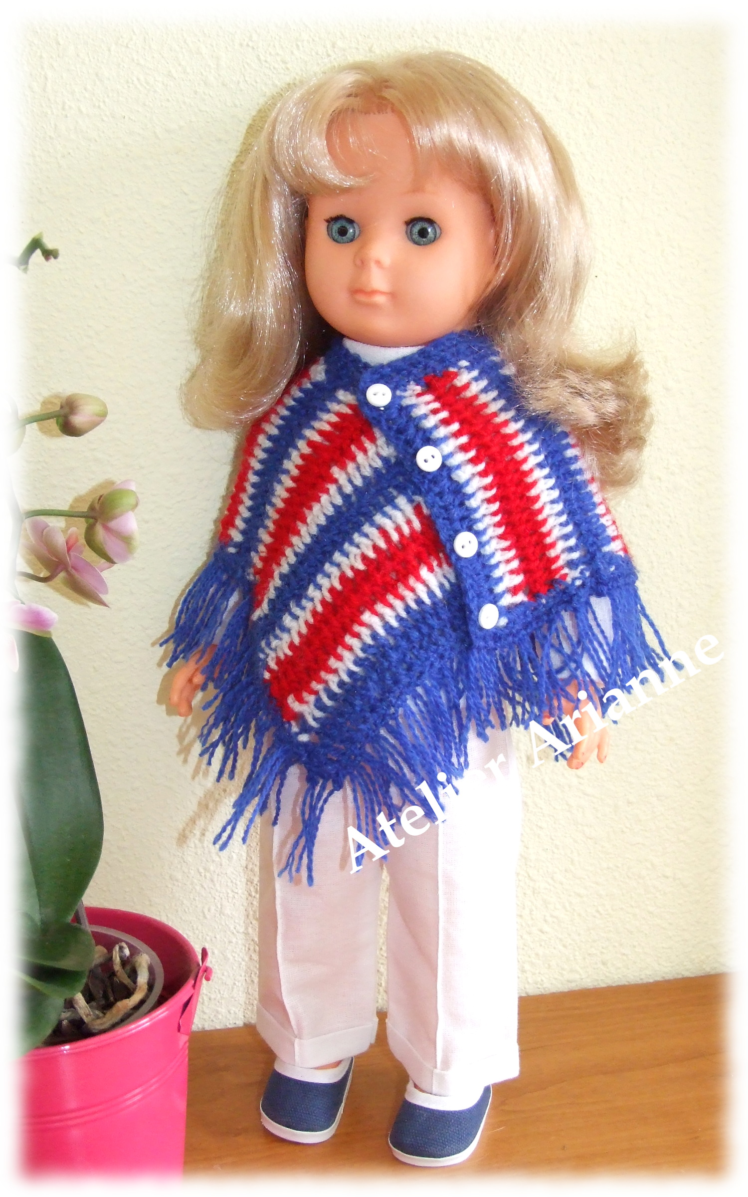 Tenue Février 1970 pour poupées de Modes et Travaux 2 pièces : t-shirt, pantalon et poncho