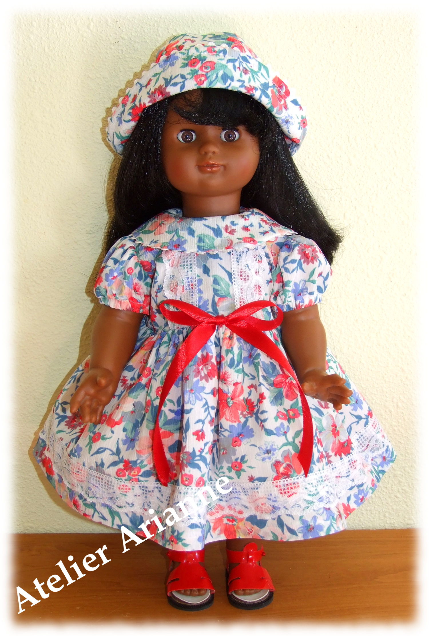 Robe avec jupon et chapeau Tenue Livia pour poupée Emilie de Modes et Travaux 2 pièce : robe et chapeau
