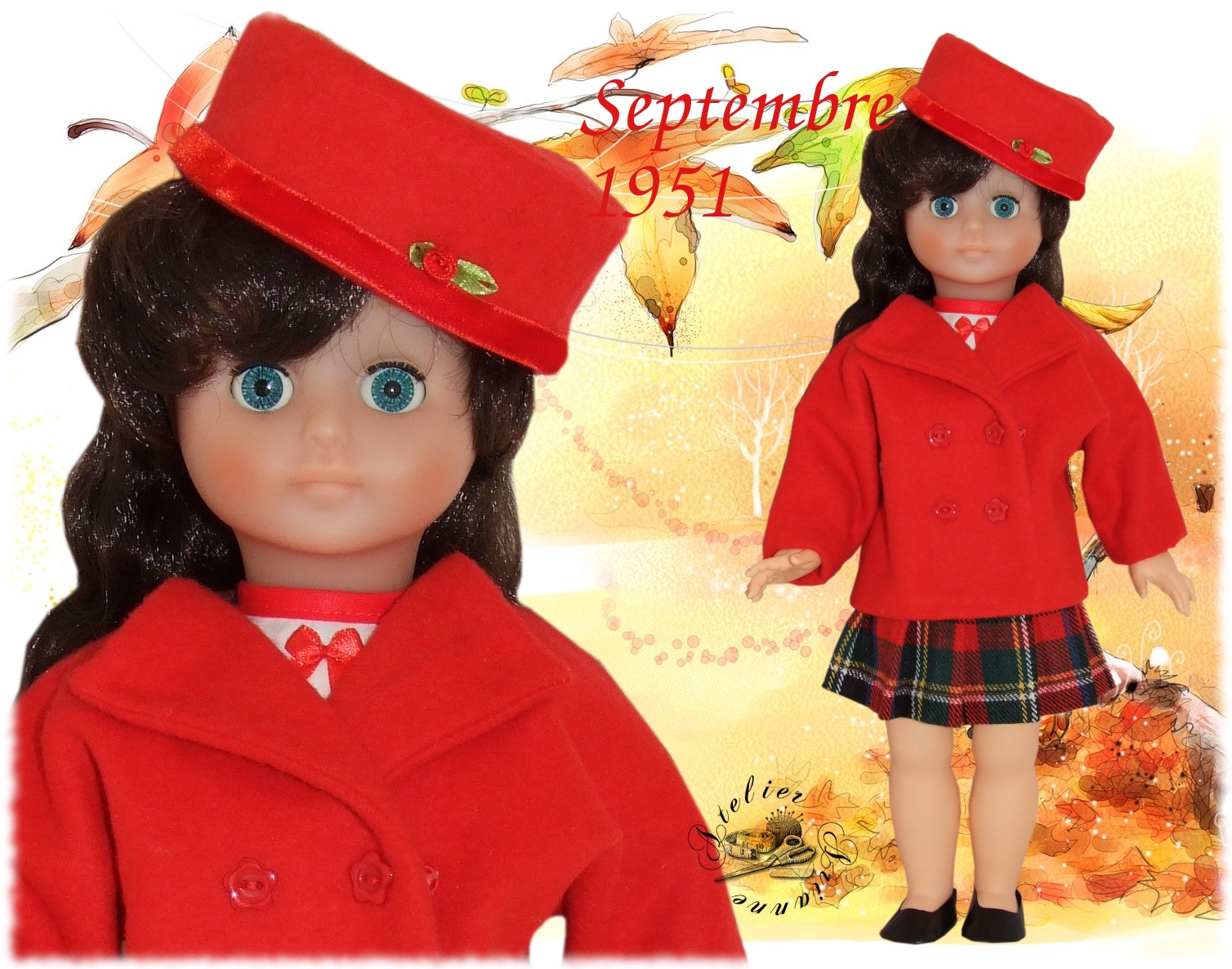 Voici un ensemble paru dans Modes et Travaux en Août 1951 , adapté à la poupée Sylvie de Petitcollin. Date : août et septembre 1951 Poupée : Sylvie de Petitcollin