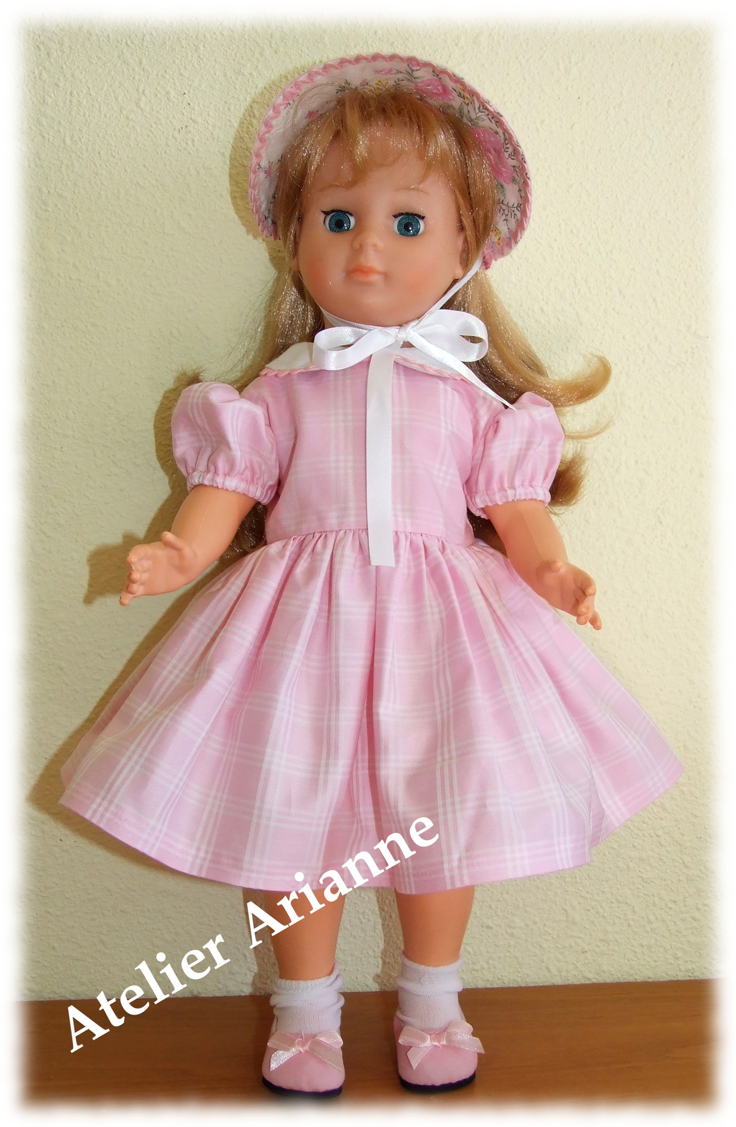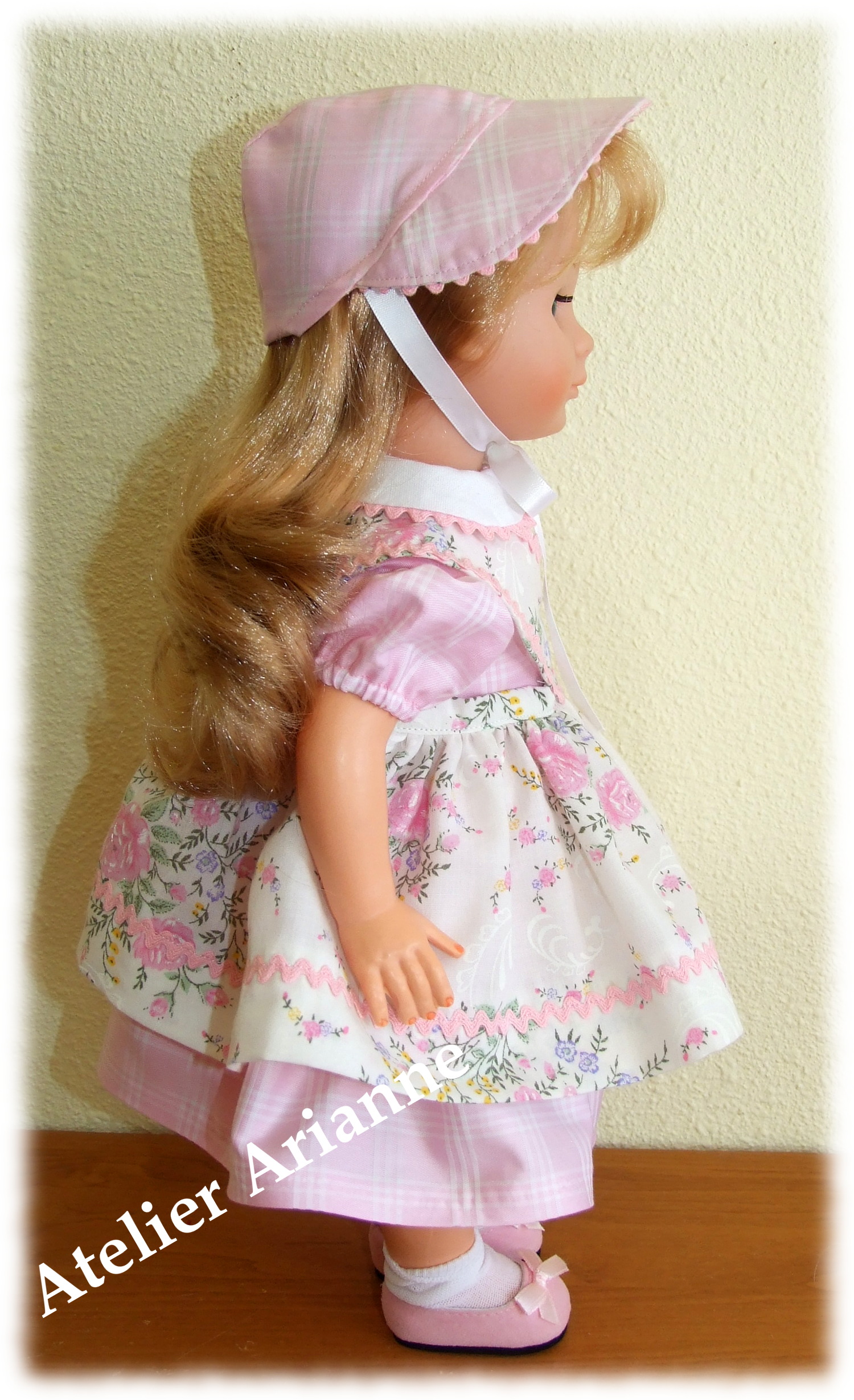 Tenue septembre 1957 et décembre 1951 pour poupées Modes et Travaux, Marie-Françoise, Françoise, Louise, Francette 3 pièces : la robe déc.1951, tablier septembre 1957 et chapeau octobre 1955