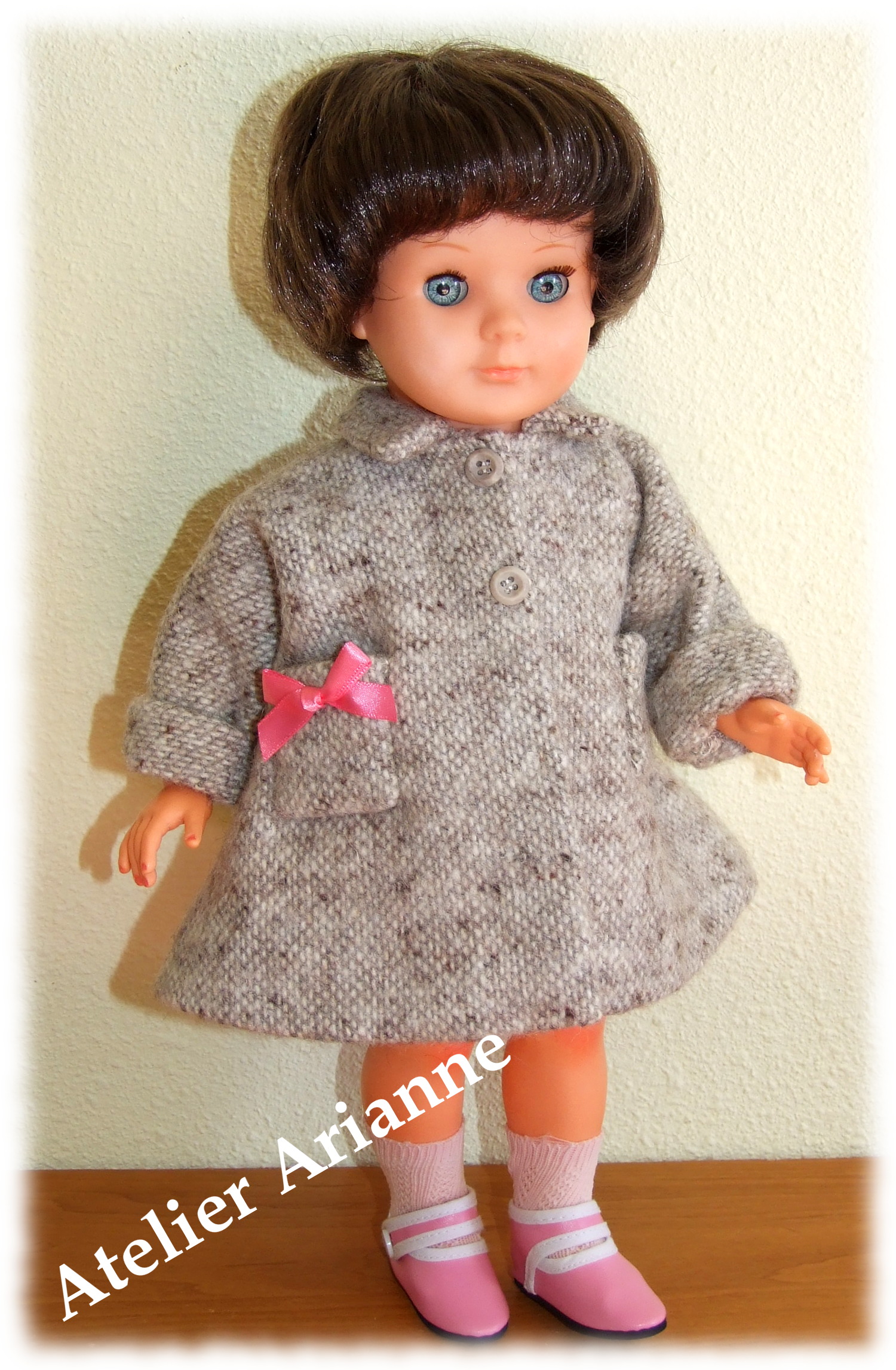 Manteau Sylvette pour poupée Modes et Travaux Poupée : Louise , Marie – Françoise, Louise, et Francette Taille : 39 / 40 cm 1 pièce : le manteau Couleur : beige camel Matériau : pure laine