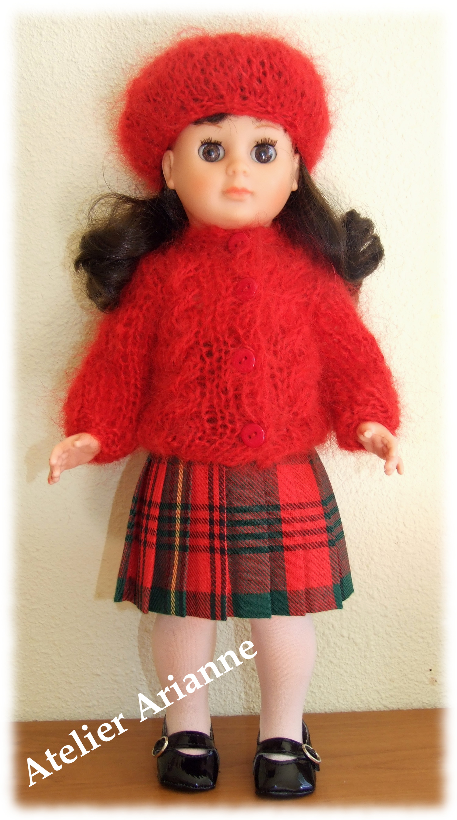 Tenue Valentina tricot, couture pour poupée Marie-Françoise Modes et TravauxGilet, béret en mohair et jupe plissée Tenue tricot et couture pour poupées Françoise, Marie – Françoise et Francette Modes et TravauxPoupée : Françoise , Marie – Françoise et FrancetteTaille : 39 / 40 cmpièces : 3 gilet et béret en mohair , jupe plisséeMatériau : écossais et mohairCouleurs : rouge